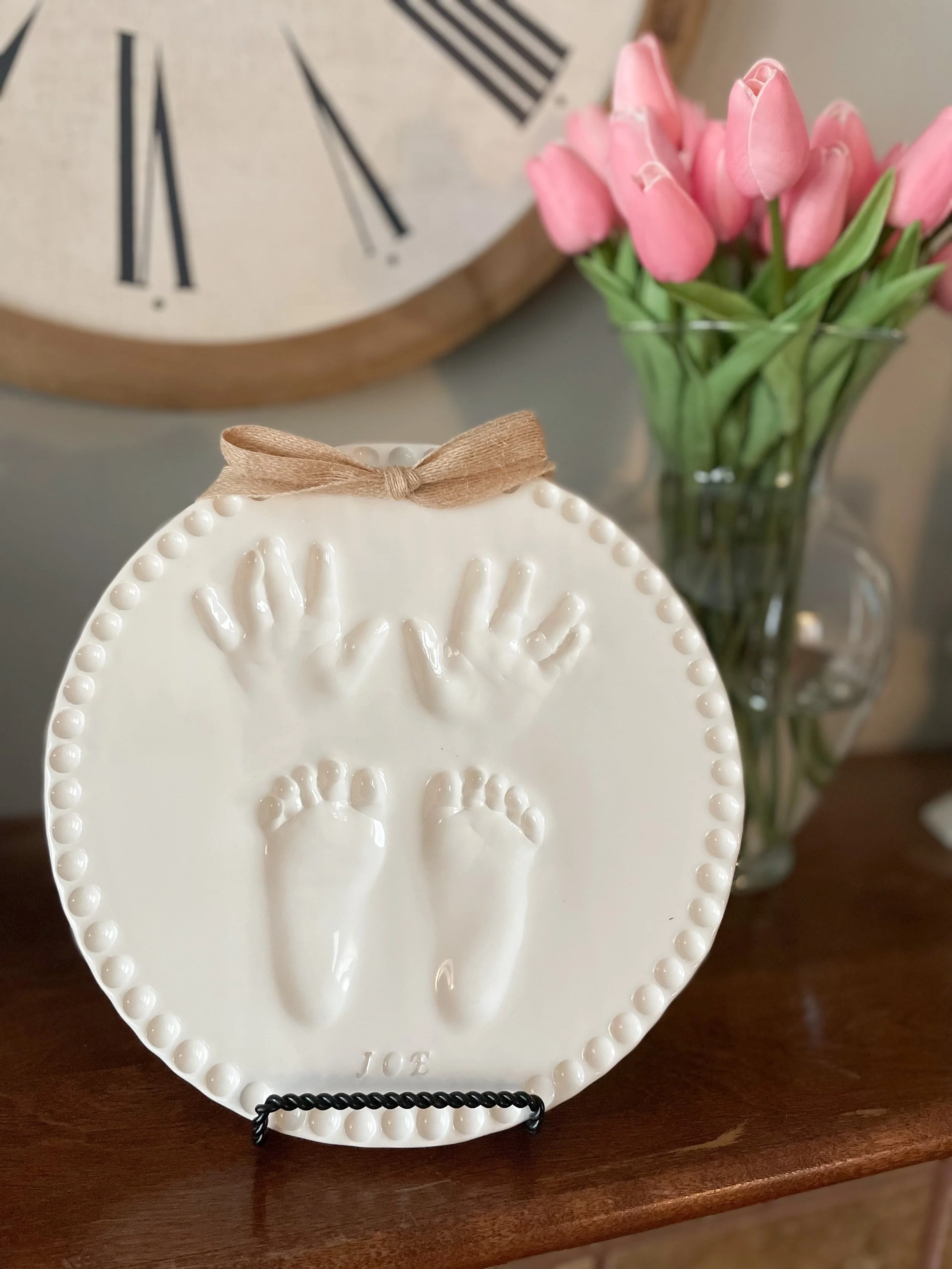 It fills me with joy to make families smile seeing their precious babies’ hands and feet permanently captured in ceramic clay. Families will love having these keepsakes of their children to pass down through the generations. Just imagine your great-grandchildren placing their hands on your baby’s handprint that you had created many years before. What a treasure to have!